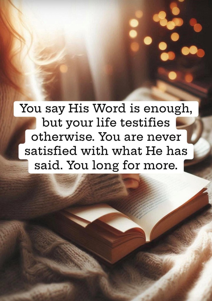 You say it is, but your life testifies otherwise. You are never satisfied with what He has said. You long for more.