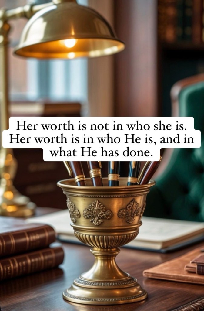 Her worth is not in who she is. Her worth is in who He is, and in what He has done. She is precious because she has been redeemed and made new.