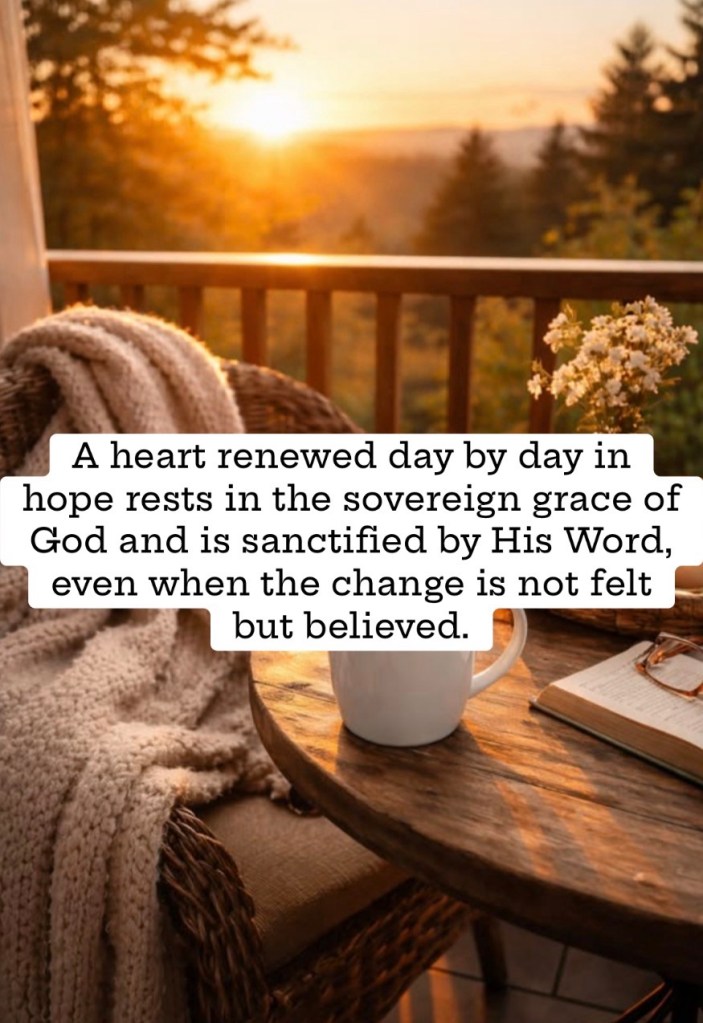 A heart renewed day by day in hope rests in the sovereign grace of God at work in the believer and by means of His Word, which has a purifying effect on the mind and heart whereby the saint is changed and is being changed, even when the effects are not necessarily felt but believed. This hope sanctifies the believer.