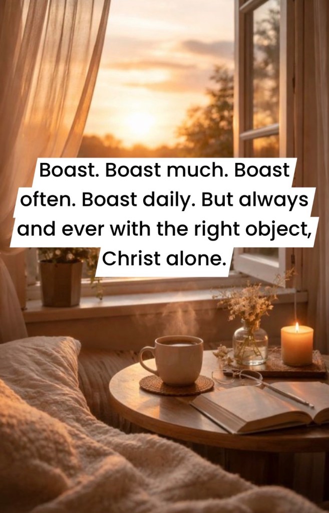 Boast much and boast often, but always with the right object. Christ alone. For no man ever raised himself from his pitiful and wretched state or set himself on the course of life, peace, hope, love, truth, light, and salvation by any will, desire, or effort of his own. It is all of grace.